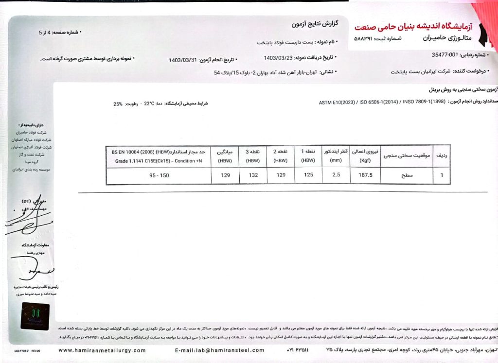 در فرآیند تولید بست داربستی فولاد پایتخت، کنترل کیفیت در تمامی مراحل انجام میشود، از جمله: